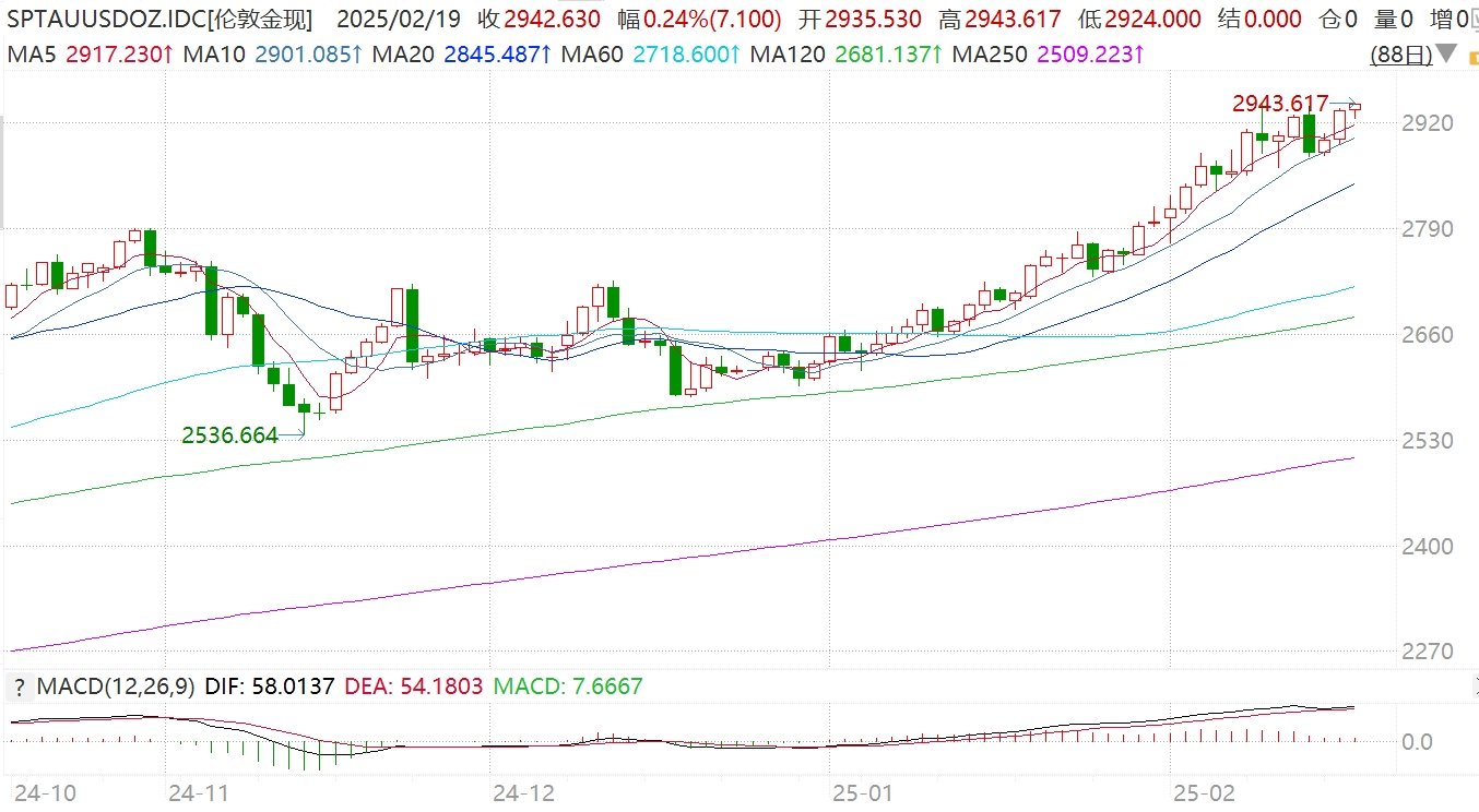 格隆汇2月19日|现货黄金涨至2943.617美元/盎司,时隔一周再度创下历史新高。